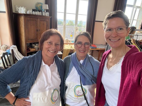 Kleidung hat einen hohen Ressourcenverbrauch: Wasser, Energie, Chemikalien. Synthetikfasern sind nicht biologisch abbaubar und erzeugen Mikroplastik. 'Fast Fashion' bedeutet oft: Geringe Qualität, kurze Lebensdauer, viel Müll, hohe CO2-Belastung. Nur ein kleiner Teil der Altkleidung wird wiederverwendet oder recycelt. Die Alternative: Tauschen statt Kaufen! Gut erhaltene Kleidungsstücke finden neue Besitzerinnen und Besitzer.Aus „pre-worn“ wird „pre-loved“. Am 27.09. trafen sich viele Menschen aus Alfter und Umgebung zu unserer ersten Kleidertauschbörse in der Genuss-Schule Alfter (herzlichen Dank an Constanze Schnitter!). Zur Nachhaltigkeit von Mode finden hier eine Hintergrund-Information. (Foto: V.l.n.r., Sabina Glasmacher, Jeanette Schroerlücke, Imke Voß; Dialog-Gesundheit-Klima)